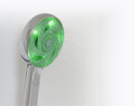 Cabeça de chuveiro que mede o consumo de água, comunica por bluetooth v4 com uma aplicação iOS ou Android.